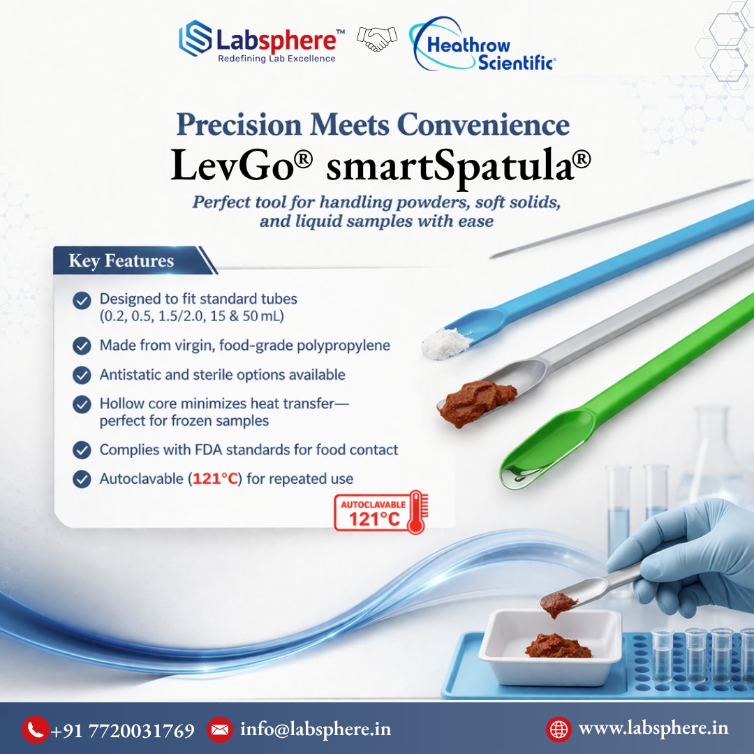 The LevGo® smartSpatula® is designed to meet these needs, offering a reliable solution for handling powders, soft solids, and liquid samples across a wide range of applications.