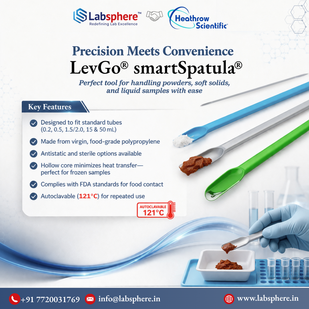 In today’s fast-evolving laboratory environments, precision, hygiene, and efficiency are critical to achieving reliable results. At Labsphere, we understand the importance of high-quality tools that support seamless workflows. As authorized distributors of lab equipment and a trusted manufacturer of lab equipment, we bring you advanced solutions like the LevGo® smartSpatula®—designed to simplify sample handling across diverse laboratory applications.